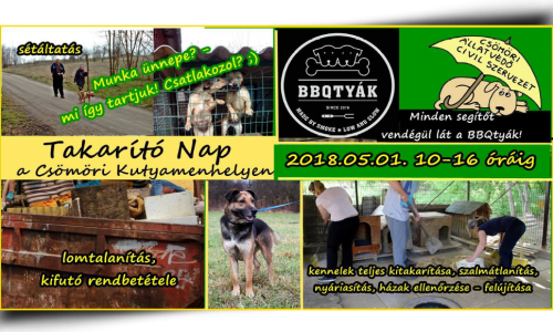 ❗2018.05.01. 10 – 16 óráig Takarítónap a menhelyen!